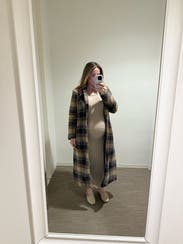 Received with tags on and absolutely loving this for the transitional fall weather. It’s soft and cozy, but does pill. I’m 5’5” and it skims the floor when on stairs or seated. It adds to any outfit!