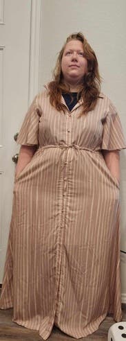 This dress was a dream for me. Overall, a little large, but the drawstring waist helped. The color was pretty and the pockets! So many compliments.