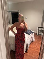 Loved the silhouette this dress gave me as I have a long torso. The red was the perfect tone. Was long enough, yay!