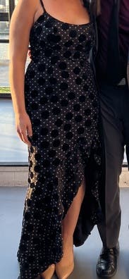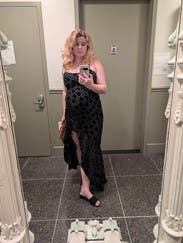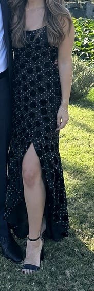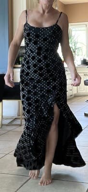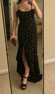 I wore this dress to a black & white gala and was mostly satisfied with the look. The straps were a bit too long (and not adjustable) so I had to keep pulling them up all night, but the dress fit well everywhere else. The split was my favorite part of the dress!
