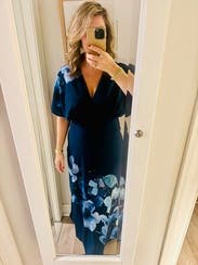 At first I was a little disappointed in the material of this dress…it would be perfect if it was made of silk. But I loved the colors and asymmetric floral print. I needed a modest dress for a religious event and I think this worked well and I didn’t feel frumpy. The bust area would be better with a little snap for me….the girls wanted to pop out a few times, but some tape would work too. Overall I felt great in the dress and thought it was pretty and perfect for the event. Looks great with nude shoes.