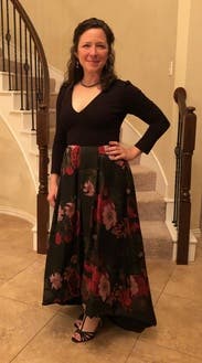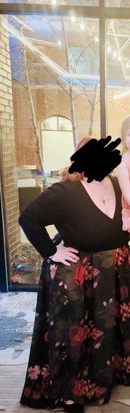 This dress felt like wearing a t-shirt, it was so comfortable while also being formal! I didn’t need to wear a bra because the top fabric is nice and thick. I had low heels on and think I might have been dragging the back of the dress a little if I had worn flats.