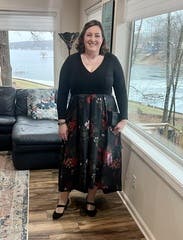 Highly recommend this dress for a winter occasion. Comfortable top and beautiful A-line skirt. I originally ordered a size 10 but 5 days before they only had the 12 available. It still fit well.