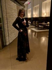 I rented this for my stay-at-home 5 year anniversary. It was perfect-- I felt glamorous but comfortable, especially with the heavy high-low skirt. Plus, it has pockets ;)