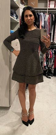 Loved the fit of this dress. Wore it for date night and loved the shimmer. Would also make a great cocktail dress for a holiday party. Will rent again.