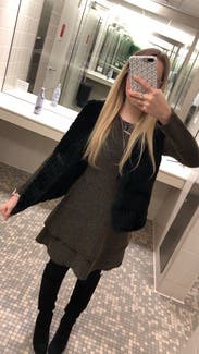 Fits great. Super flattering and easy to dress up or down with heels or boots. Loved it even with my fur vest