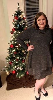 Rented for Xmas Eve, festive but conservative enough for the church service. Stretchy, so some wiggle room in size. Will hug your midsection.