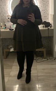 This worked well for me for wanting a comfortable and flattering, formal-ish dress with little fuss. This fit the bill. It was TTS/sized down for me. I got a 16 and it fit perfect. Slight weight to it so perfect for cooler weather. Did the trick but didn’t wow me enough to repeat.