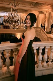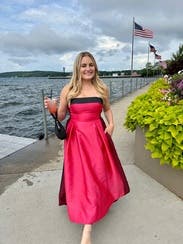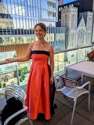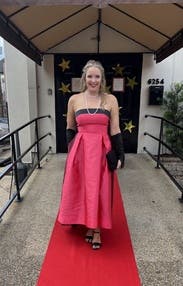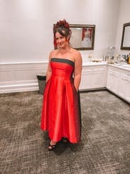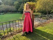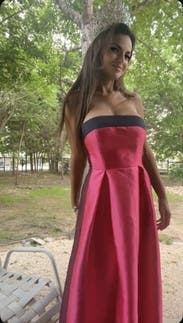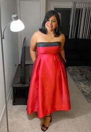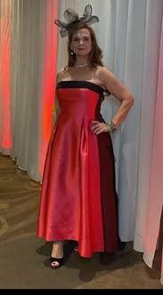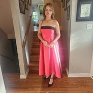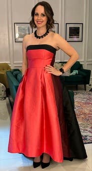 I got tons of compliments on this dress at the ballet fundraiser gala! I paired it with gold jewelry and black shoes with an ankle strap just like the model. It was a little loose in the bust. I wore 2 strapless bras to amp up the cushion and that helped me feel more secure in it. I wished I'd have ordered the 6 & 8 rather than 8 & 10, as the 6 may have actually fit me. The back is quite long so be prepared to wear real heels to get it off the ground. It's very well made and has light boning in the bodice. Pockets were great to have! I was sad to send it back - made me feel amazing for the night!