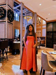 I really loved this dress and got a ton of compliments. My only issues were that my breasts were not big enough to keep it up so I did have to wear a strapless bra under it. And I didn’t love that the train was on the ground. I had to pick it up as I walked. But that kind of added to the princess vibe… at least in my head. Would highly recommend