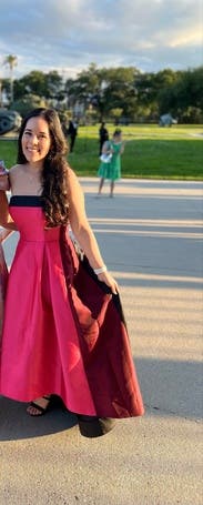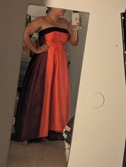 I absolutely loved wearing this dress! It has such a nice shape and love the unexpected color panels. I received many compliments throughout the night and felt amazing in it. I wore low heels with it and the back of the dress dragged a little, but it wasn't too bad.