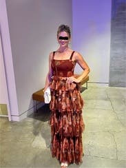 One of my favorite rentals! Wore this to my best friend’s wedding. The colors are gorgeous for fall. So many compliments, very flattering and fit like a glove. Did not need a bra or shape wear so very comfortable. The tulle is very fluffy but gave it a fun element without being too much