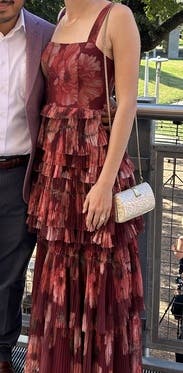 I wore this dress to a formal wedding. I loved it because it felt formal without feeling like I was one of the bridesmaids. I received countless compliments. It’s one of those dresses that you just know won’t resemble one someone else is wearing. Also loved that it had built in padding so I could go braless. It also hid any lumps and bumps, so I didn’t have to wear any tight shapewear for it to be flattering. Would rent again.