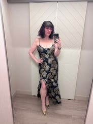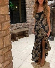 Wore this to a black tie wedding and it was a hit — received so many compliments. It felt gorgeous in it. It had a wow factor for sure! The dress does cut down low and wouldn’t be suitable for anyone with a larger sized chest.