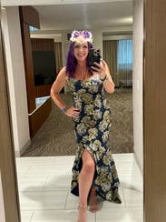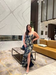 Had to order a size up, so impressed it got here in time! I’d wear a little shape wear with it but it was absolutely gorgeous, easy to dance in, & perfect length