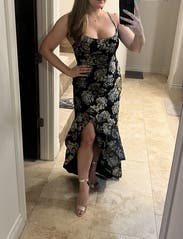 Gorgeous dress! Tighter through the hips/thigh area than I measured for so it wasn't easy to sit down in. Still managed to make it work and had a great time and really happy how it all end up. Straps were a little long but the dress holds itself up so not ally an issue. Overall very pleased with quality and look of this dress, would rent again.
