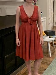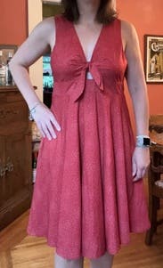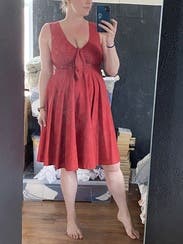 I liked the dress a lot! It has pockets which are always great to have. It can be dressed up or down, so it was perfect for a backyard grad party. I could have sized down and the top fit better, but the ties allow for the chest to fit a bit better. The waist felt better on the larger size.