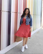 I love this flirty little day dress. So cute with white sneakers and a denim jacket.