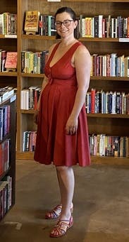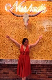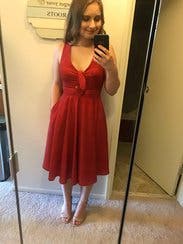 I'm 5'1" so the skirt hit a smidge lower than what I would've considered ideal (1-2" below my knee) - still incredibly cute!!! Pockets were a great bonus, material was thinner than expected but not terrible. I'm a C-cup but still felt comfortable enough to go braless - total win! This dress is great for a summer night out - I can see this being picture perfect for date night at the county fair or boardwalk paired with wedges or white sneakers. I wore it for a "Paint the Town Red" themed night in Nashville - lovely and comfortable dress, I felt like hot stuff!