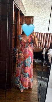 Wore this dress comfortably at 28 weeks pregnant to my friend’s sangeet. Sized up to accommodate the bump. Pic is when I got home (totally forgot to grab one at the event).