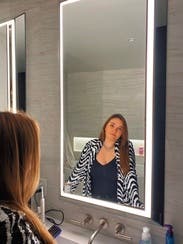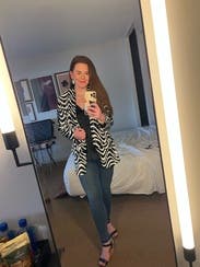 I loved this jacket so much that I may just have to buy it! I ordered the M with a L backup. They both looked great - just depending on what you wore underneath. I wore a thin top so went with the M, paired with some sequin pants because...Vegas!