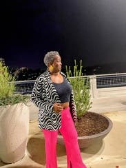 Love this jacket with the jumpsuit!! Wore to a gala and got all the compliments. Felt like a fashion icon.