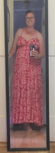 Loved this dress, super comfortable but still looks dressy. I found the straps a little loose up top and probably could have sized down, but overall loved it!