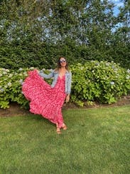 The fabric was light and really fun, but any bra with straps is impossible to hide so "the girls" were too droopy for a formal event. This would be perfect for a summer night at the bar with friends or date night at a museum (where I could enjoy the swishy long skirt). Not good for a semi-formal wedding so ended up not wearing it but will consider it again for a warmer-weather girls' trip!
