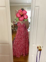 Got a lot of compliments wearing this dress. Wore a few times in Hawaii on vacation. Loved it but the waist has no ties and it is rather large. Nothing wrong with that but thought from online photos it would be a bit more fitted.
