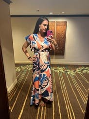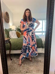 I've rented this a few times and I wear it for work, for fun social nights, and just recently wore it to a luau in Hawaii. It's one of my fave warm weather rentals. It's a gorgeous dress that has great material (not stretchy/clingy) but is light weight. I've lost about 10 pounds since I last rented it and the same size works because it's a wrap. The only potential con: the wrap part is a string, so if you want to tie the dress tight, it can be a bit uncomfortable. I'll keep renting this again!