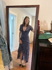 Worn to a wedding. I stitched the bottom 2” of the front V closed for modesty / petite height. But the dress was comfortable and fit perfectly. Received tons of compliments.