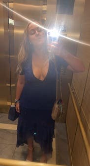 This dress is so comfy yet elegant and fun! Low cut in the front and flouncy in the back. I got so many compliments. Would definitely rent again.