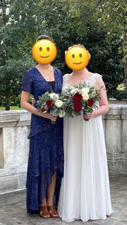 Absolutely love this dress but the fit was not great. It was too long in the back so I had to hold it up every time I walked or else it would get caught in my heels. The top was so baggy that I had to pin it and use a massive amount of dress tape, which I was self conscious about all night so couldn't fully enjoy myself on the dance floor. Gorgeous dress for someone with a larger chest and not super petite.