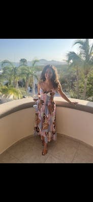 Loved this dress for vacation. Very flattering and great colors. The bust was a little tight for me with a strapless bra so I probably could have sized up for that reason but overall I loved it and would rent again.
