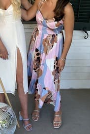 Float sweetly through weddings and weekend getaways in this painterly Hutch dress suspended by dainty tie straps.