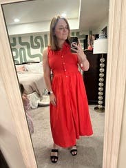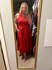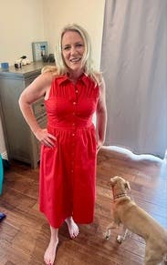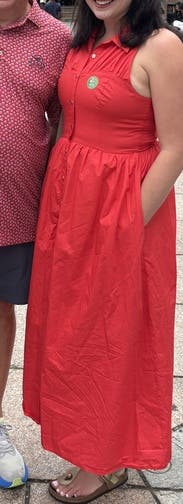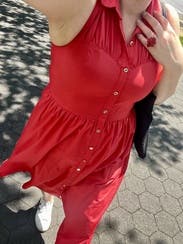 I love a good red dress. Very comfy, work appropriate, and has pockets.