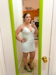 This dress fit perfectly: not too tight, not too short, and not too revealing. The sequins add a special subtle touch to my bachelorette outfit.