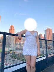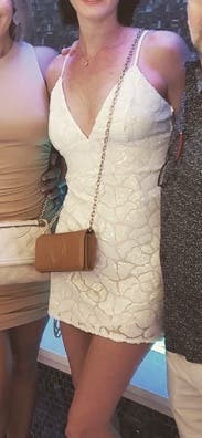 Obsessed this this dress! It was too perfect for a bachelorette weekend in Vegas. Beware: it is super short! The fabric covering my boobs (I’m a 36B) was a little loose on the sides, and had I owned it, I would need to tailor, but as a rental it was fine. Otherwise, 9/10 for dinner and dancing in Vegas!