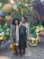 I wore this while pregnant, going up a size and it was a major hit. I felt comfortable in it and the pattern is very cool. I’m 5’8” and not sure if you could be taller as the slit is relatively high. Would rent again