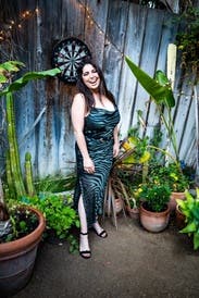 Beautiful dress for a fall wedding! Pictures don’t do it justice. Love the emerald green with velvet black details. Will rent again!