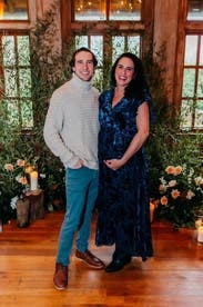 Wore this to my baby shower in a size larger than my usual size and it was perfect! For reference I am 31 weeks pregnant. Got so many compliments and felt comfortable and cute!