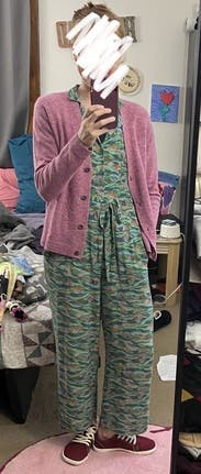 My uncle said "Are those jammies, or going out clothes?" Despite that, I enjoyed wearing this with fuchsia Birkenstocks and given the opportunity would also have worn it with navy clog sandals and big earrings for a fancier vibe.