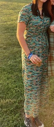 Wore this soooo many times. The print is cute and unique, and the cut was a great fit for me. Flowy without looking baggy.