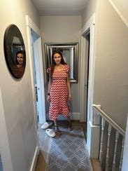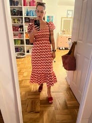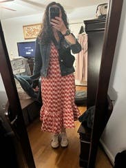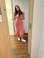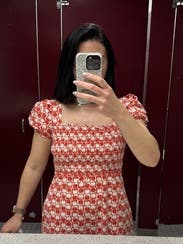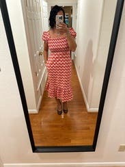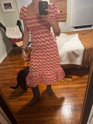 This dress was cute enough but the smocking puckered in the weirdest way in the side boob area which I was not a fan of. Otherwise it’s cute but likely won’t rent again because it drove me nuts while wearing