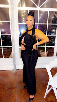 This dress was so complimenting! It’s fitted but the material smooths out your form. I’m a DD cup size and the style of this gave a tasteful look to my chest which I really appreciated since I struggle to find dresses that compliment or fit properly. Would absolutely rent again. The only problem I had was getting my head through/into the neck hole. It’s a little tricky and probs best to either put it on before doing your hair or being super careful to put it on after doing your hair.