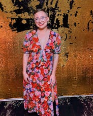 Wore to a rehearsal dinner. Flowy and light on the bottom which was lovely in warm weather. It was very tight on the top with little arm mobility so not good for dancing. I didn’t know what to do with the bow so I tucked it in and much preferred that!