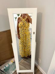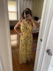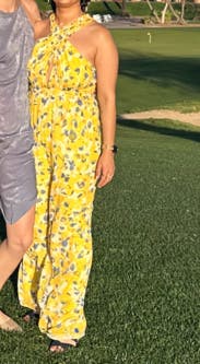 Loved everything about this jumpsuit and almost bought it. The print is beautiful, it’s flowy and fun. A bit big in the top if you don’t have a lot of chest, but overall so cute (cannot wear a bra with it but don’t need to!).