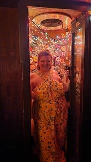 This jumpsuit is phenomenal - but be prepared to have some kind of fashion or boob tape on hand, since you can't tighten the straps, and the open front is pretty low, it can get kind of dicey while dancing. It's also probs not the right choice if you have a longer torso and a bigger chest. But otherwise, got tons of compliments and it was super fun to wear!