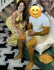 This romper was fun, I received so many compliments. It was very comfortable and the perfect color for a spring wedding. As many other reviewers have pointed out, the top fit was very awkward. I'm a DD so I'm used to filling out big tops, but there was still a lot of excess fabric even after criss-crossing at the front. I think sizing down instead of up for my backup would have helped. Luckily, my friend had the genius idea of tying the excess fabric around the back with the long pieces that are supposed to be tied around the middle. After that solution it was a breezy, fun, no worries evening. So if you're going for this romper I'd recommend the following: size down for your backup and ensure you'll have a buddy that will you tie the back up with something (will need this for any bathroom breaks!). I think fashion tape would help too.