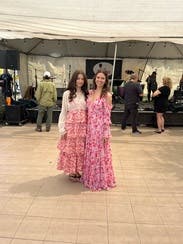 I’m postpartum and in between sizes right now so this dress was a perfect solution and I felt great in it. Some of the reviews make the ground color look almost white so I was nervous renting it for a wedding but can confirm that it has a light pink base 🌸